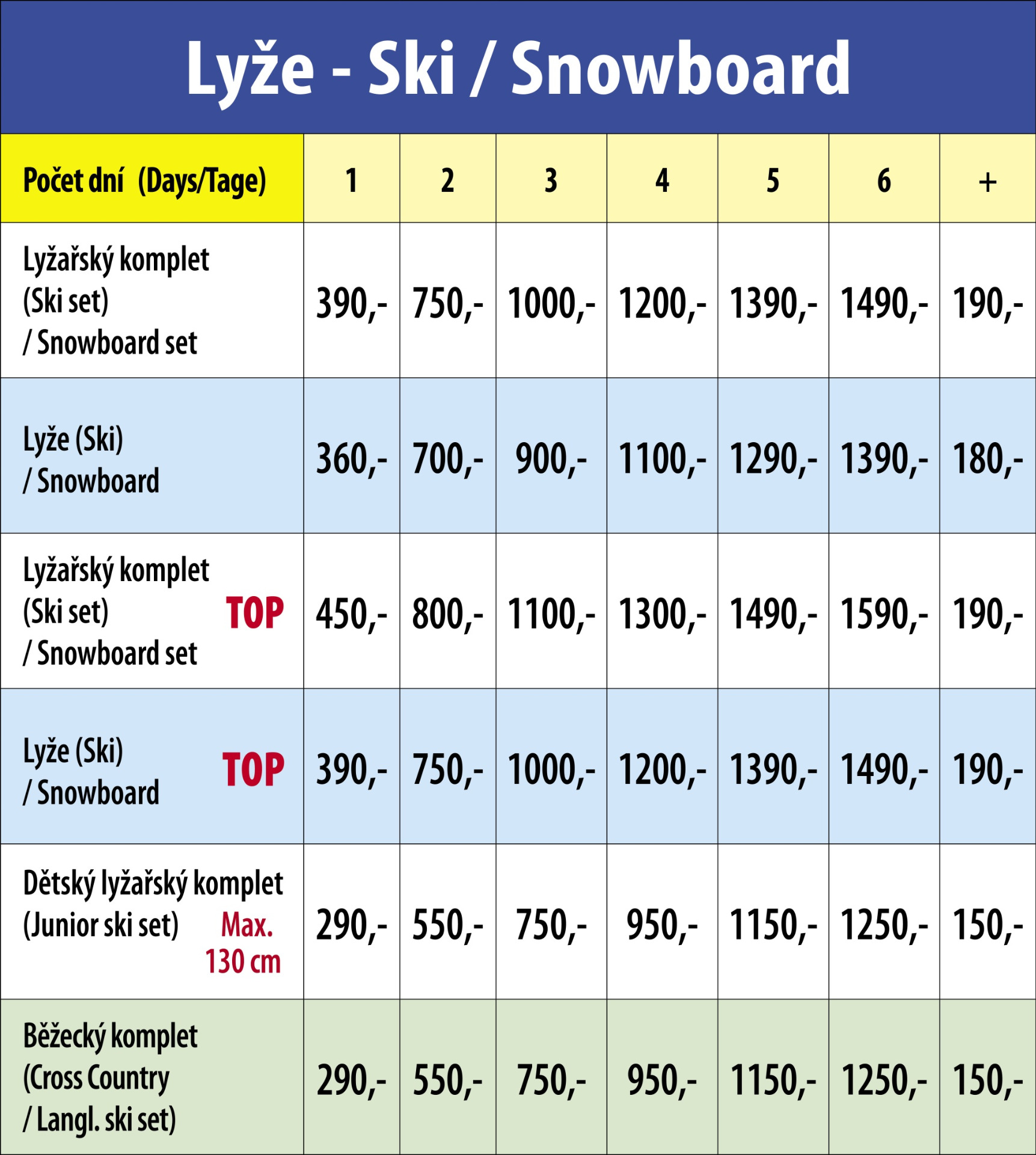 Naše půjčovna lyží a snowboardů se nachází v lyžařském areálu Herlíkovice 8 km před Skiareálem Špindlerův Mlýn. Nabízí kvalitní lyže a snowboardy značky Head, za nízké ceny. Vybrat si můžete základní modely pro začátečníky a středně pokročilé, ale i modely TOP pro pokročilé. Lyže i snowboardy máme samozřejmě i pro ty nejmenší lyžaře a snowboardisty. Součástí kompletu jsou lyže, boty a hole, případně snowboard včetně bot. Veškeré vybavení je pravidelně servisované.